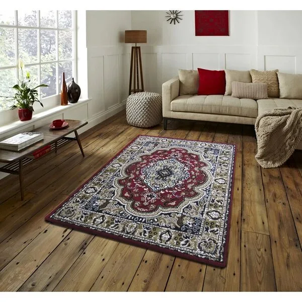 Runo o wysokości ok. 9 mm jest miłe w dotyku i łatwe do utrzymania w czystości, co sprawia, że dywan sprawdzi się w salonie, sypialni czy gabinecie urządzonym w klasycznym stylu.
